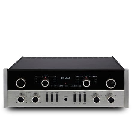 Featuring a cool, 1960s retro design, the C22 Vacuum Tube Preamplifier has been updated to modern standards to deliver a performance on par with any other McIntosh preamplifier. Electromagnetic input switching provides reliable, noiseless and distortion free operation. Low distortion levels of all types are less than 0.08%, allowing music to be presented with total transparency and accuracy.