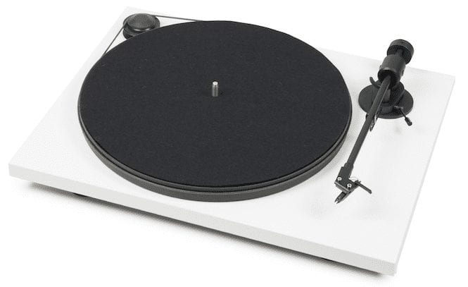 It comes with an included dustcover and is pre-mounted with the capable Ortofon OM 5E moving magnet cartridge. The silicone drive belt along with a low-vibration synchronous motor is powered by an onboard DC to AC generator to ensure silent motor operation. The 8.6″ aluminum tonearm with sapphire bearings is terminated with a gold-plated RCA cable for accurate and precise audio signal transmission. The low resonance platter features a stainless steel spindle and a brass bushing with a low-friction Teflon layer to virtually eliminate any bearing noise. Pro-Ject’s Primary turntable take your vinyl playback to the next level without cleaning out your wallet. Available in matte Black or White.